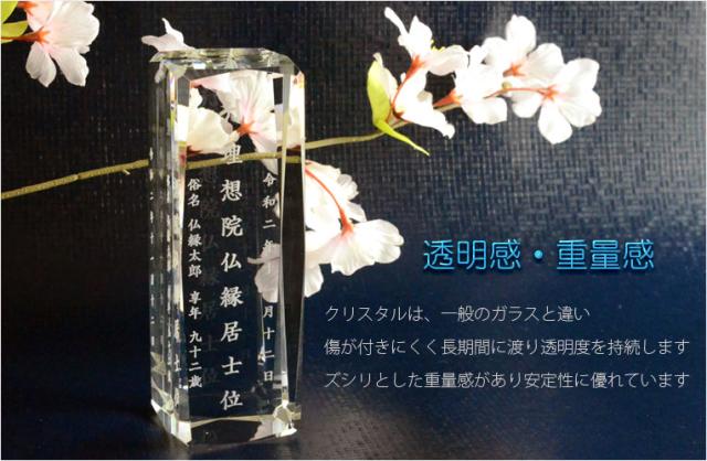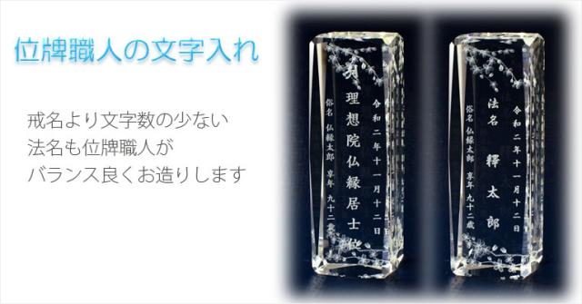 ご注文を頂いてからクリスタルに、御文字(戒名・法名)と