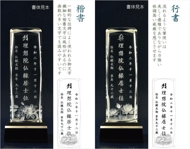お位牌専用文字、楷書体・行書体からお選び頂けます