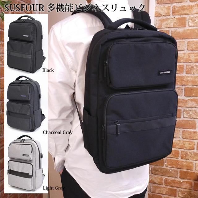 [ポイント]SUSFOUR 多機能 ビジネスリュック ビジネス リュック 仕事 レディース USB USB付き 10ポケットパソコン バックパック リュック スーツ メンズ ビジカジ 出張 旅行 学生 通勤 通学 10ポケット 多収納 ユニセックス プチプラ かっこいい サスフォー sus4