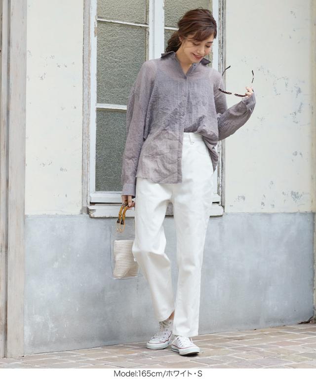 時代を超えて愛され続けるデニムは、ワードローブに必須。デニム好きなオトナカジュアルスタイルの方にオススメデニムの登場。ゆるいシルエットが、腰回りをカバーしてくれるのが嬉しいポイント。ラフでリラクシーな雰囲気が、オシャレにキマります。【素材・サイズ感】シーズンレスで楽しめるデニム素材。レーヨン混で肌あたりも◎全体的にゆったりしたサイズ感で、ストレスフリーな穿き心地。S、Mの2サイズ展開で、身体に合わせたり、お好みで選べるのも魅力的。※キャンセル/変更不可※お届けまでの日程について