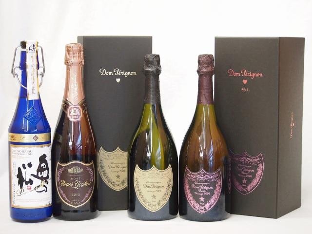 最高峰SAKE日仏西4本セット(フランスドンペリニヨン白 ドンペリ二ヨンロゼ ギフト箱付750ml×2本 スペインロジャー グラート カヴァ ロゼ ブリュット750ml×1本 福島県奥の松 純米大吟醸プレミアムスパークリング720ml×1本)