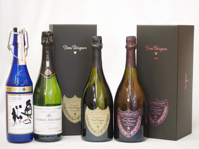 最高峰SAKE日仏4本セット(フランスドンペリニヨン白 ドンペリ二ヨンロゼ ギフト箱付750ml×2本 フランスシャルルアルマン750ml×1本 福島県奥の松 純米大吟醸プレミアムスパークリング720ml×1本)