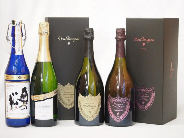 最高峰SAKE日仏4本セット(フランスドンペリニヨン白 ドンペリ二ヨンロゼ ギフト箱付750ml×2本 フランスルイ・ビカメロヴァンムスー ブラン・ド シャルド ブリッド750ml×1本 福島県奥の松 純米大吟醸プレミアムスパークリング720ml×1本)