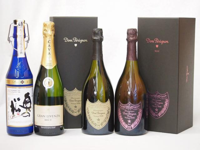 最高峰SAKE日仏西4本セット(フランスドンペリニヨン白 ドンペリ二ヨンロゼ ギフト箱付750ml×2本 スペインハウメ・セラ ブリュット スペインスパークリングワイン750ml×1本 日本福島県奥の松 純米大吟醸プレミアムスパークリング720ml×1本)