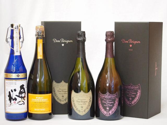 最高峰SAKE日伊4本セット(フランスドンペリニヨン白 ドンペリ二ヨンロゼ ギフト箱付750ml×2本 イタリアサンテロ・ピノ・シャルドネ・ヴィノ・スマンテ・ブリュット辛口 750ml×1本 福島県奥の松 純米大吟醸プレミアムスパークリング720ml×1本)