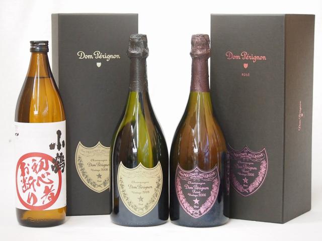 芋焼酎とドンペリ3本セット(フランスドンペリニヨン白 ドンペリ二ヨンロゼ ギフト箱付750ml×2本 鹿児島県本格芋焼酎 初心者お断り900ml×1本)