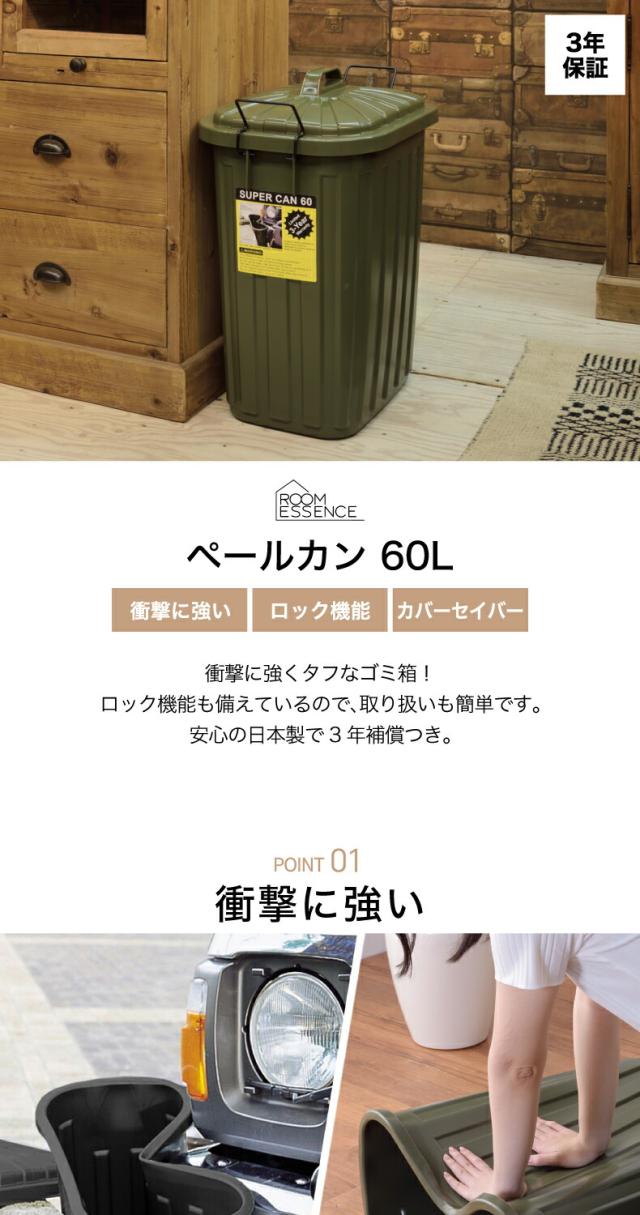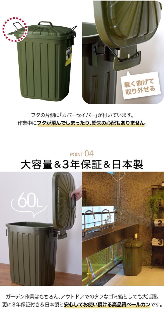 【送料無料】ペールカン 60L ゴミ箱 分別 ふた付き | ごみ箱 大容量 トラッシュボックス ダストボックス 60リットル 大型 蓋 深型 縦型 見えない 頑丈 キッチン 台所 キャンプ ガレージ ガーデニング 屋外 アウトドア リビング インテリア おしゃれ インダストリアル 新生活