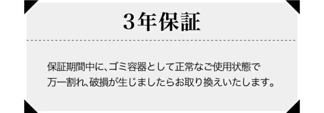 ※3年保証:保証期間中に、ゴミ容器として正常なご使用状態で万一割れ、破損が生じましたらお取り換えいたします。
