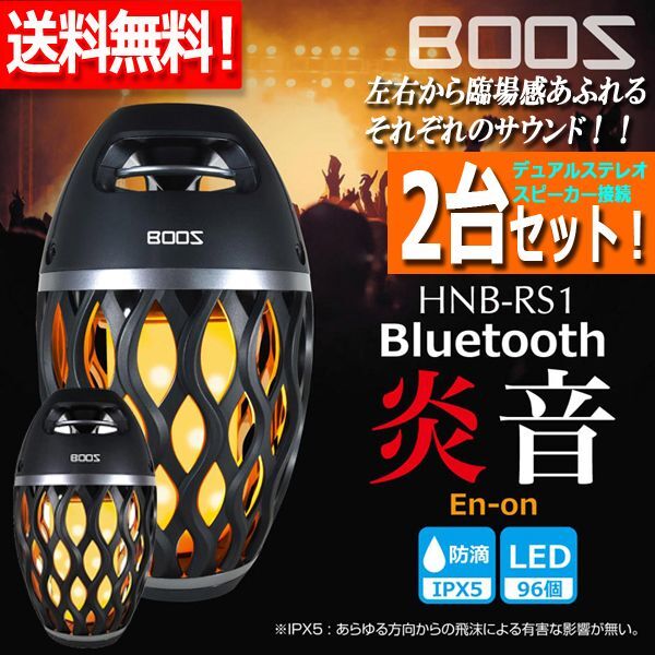 かがり火LEDランタン搭載Bluetoothパワースピーカー「炎音En-on」[2台] (デュアルステレオスピーカー ペアリング 多面LED A2DP 充電式)
