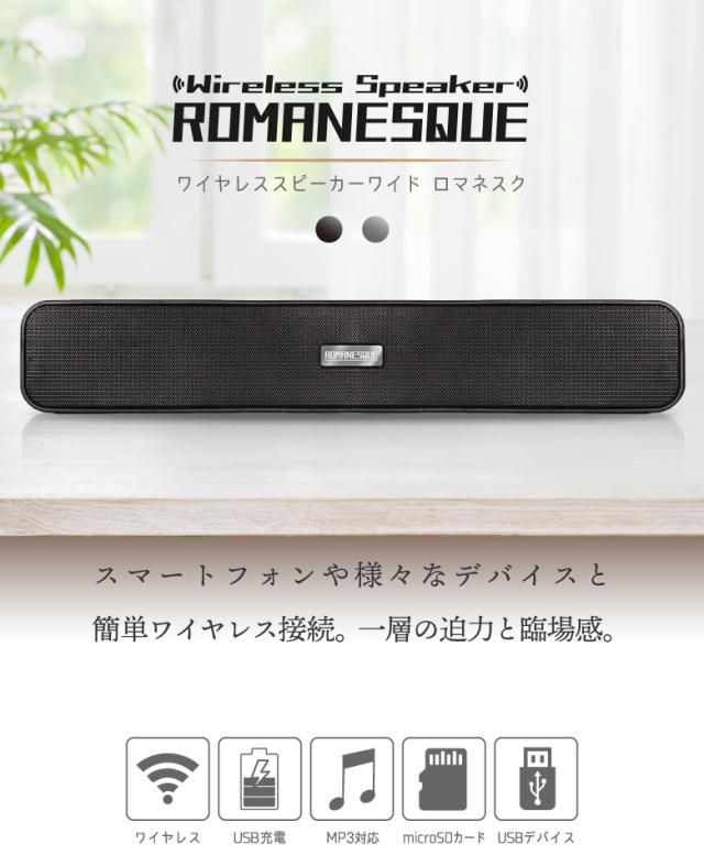 ワイヤレス スピーカー Bluetoothスピーカー 手元スピーカー Bluetoot5.3 テレビ用 TV パソコン PC スマートフォン MP3 WAV USB SDカード パワフル 高音質 iPhone android おしゃれ 電源不要 ポータブル ワイド スリム ROMANESQUE