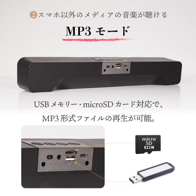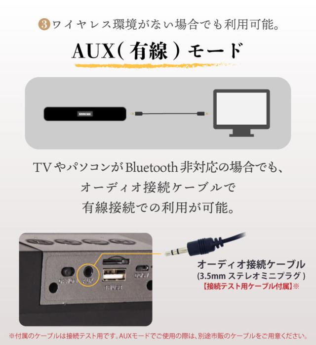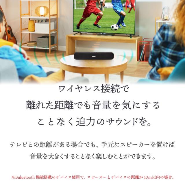 38cmワイドな大迫力のワイヤレススピーカーです。スリム&軽量ボディで持ち運びラクラク。外出先でも音楽を楽しめます。microSDやUSBメモリ(ともに別売)を使用することでMP3プレーヤーとしても使え、Bluetooth非対応のデバイスでも付属ケーブルを接続して使用できます。