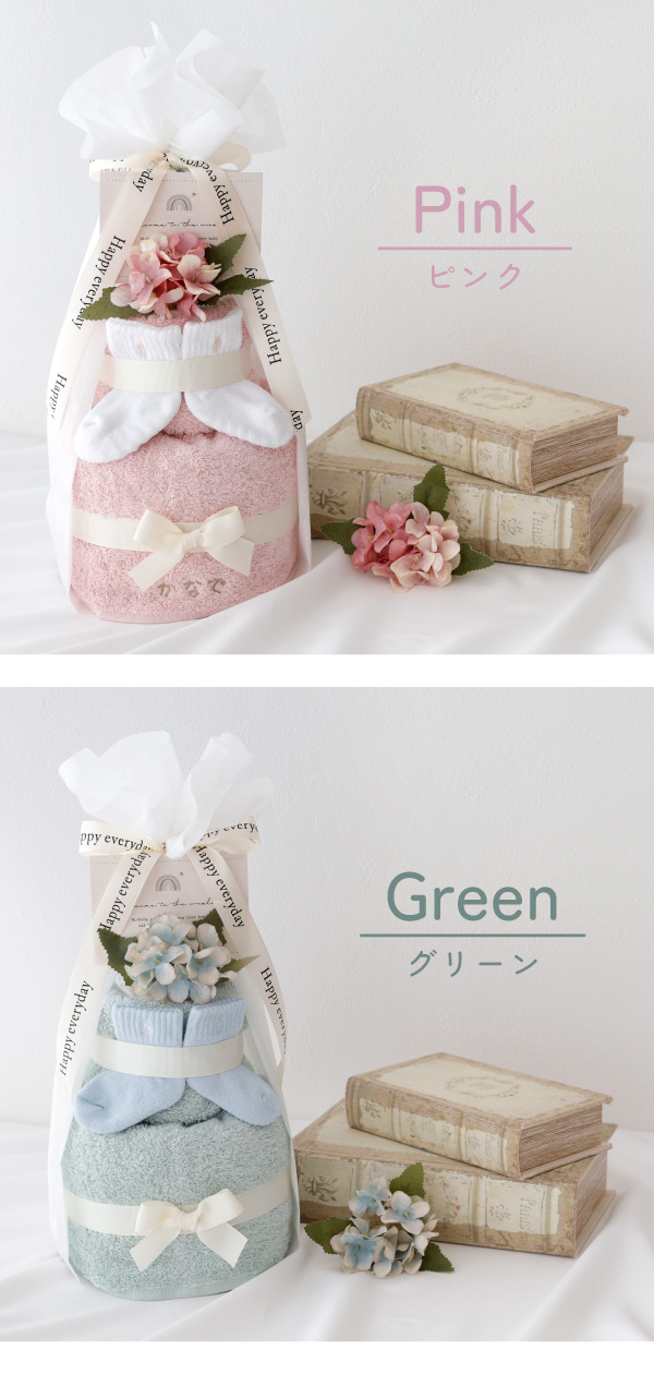 | 備考 | 当店では在庫を複数サイトで共有している為、同時にご注文があった場合売り切れとなる可能性がございます。 ■モニターによって実物と多少色が異なる場合がございます。 ■アートフラワーは入荷時期により色味・質感・デザインが変更になる場合がございます。 【名入れ刺繍について】 刺繍の文字はタオルのサイズ上10文字まででお願いいたします。 文字は「ひらがな」・「ローマ字」の2種類です。 ※ローマ字の場合、大文字は大文字、小文字は小文字として刺繍されます。 ※文字数により文字の大きさや文字間が画像のイメージと異なることがあります。 【靴下について】 3色のうち、いずれか1点が付きます。 |