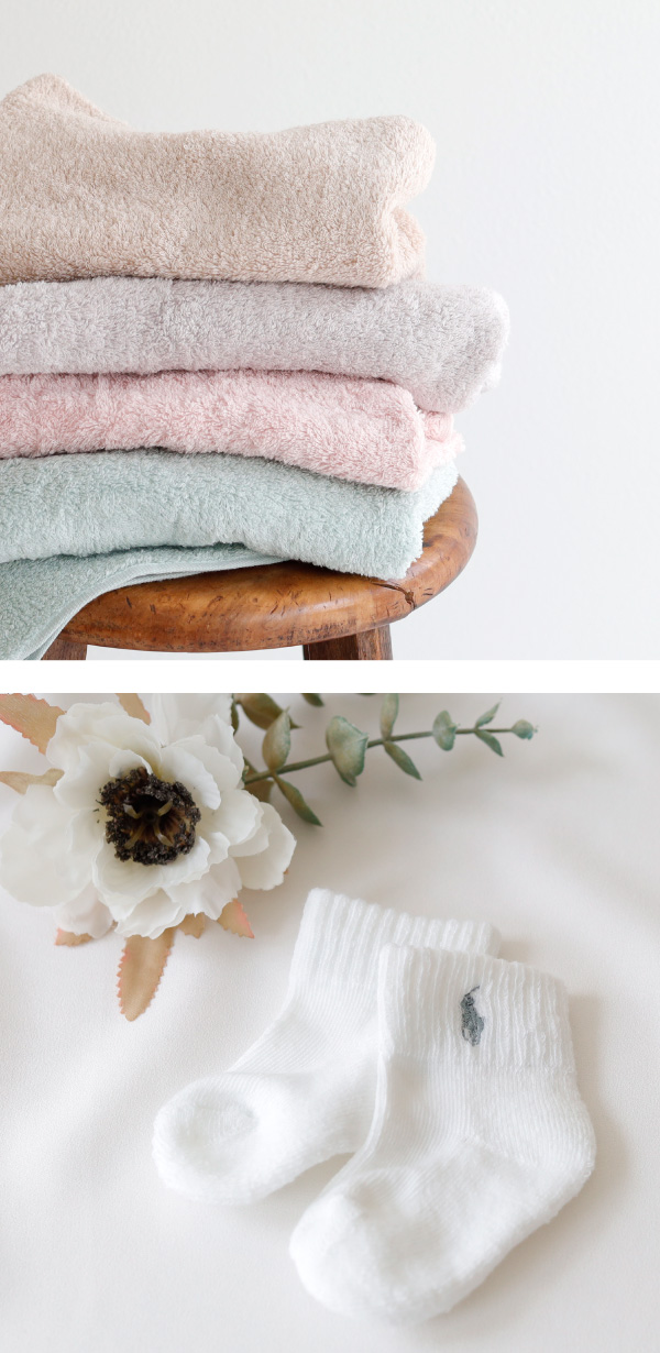 | 素材 | ・ラルフローレンのベビーソックス:ポリエステル 98%、 スパンデックス 2% ・ロングタオル:綿100% |