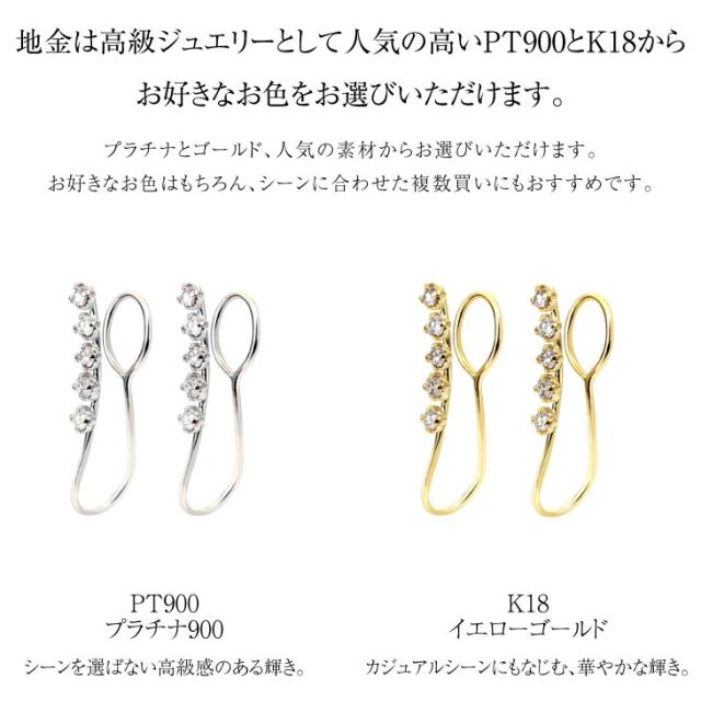 イヤーカフとして、イヤリングとして…ピアス穴が無くても身に着けて頂ける、本格ダイヤモンドジュエリーです。贅沢にダイヤモンドを10石使用しお仕立て致しました。