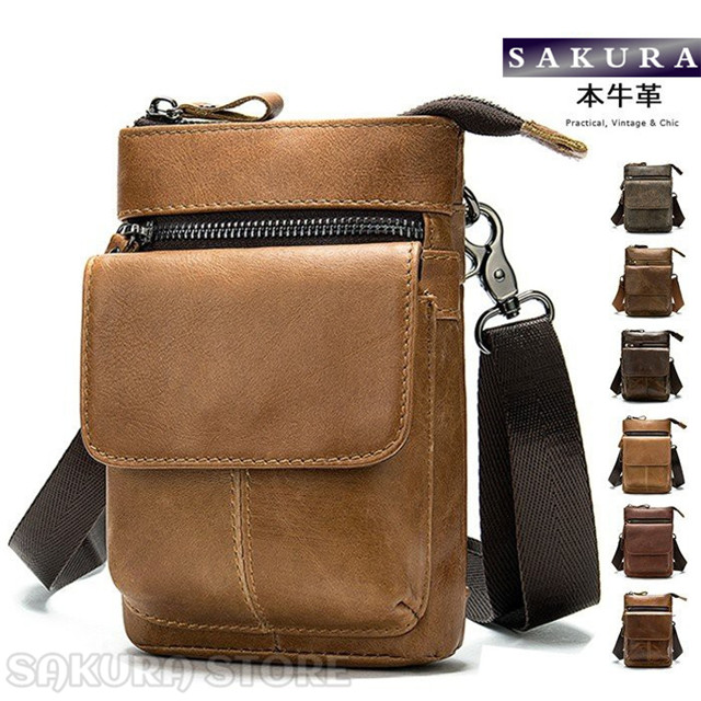 本革 牛革 レザー ミニ ショルダー シザーケース ヒップバッグ 腰バッグ メンズ ベルトポーチ スマホケース ショルダーバッグ 斜め掛け ポーチ 小物入れ 父の日