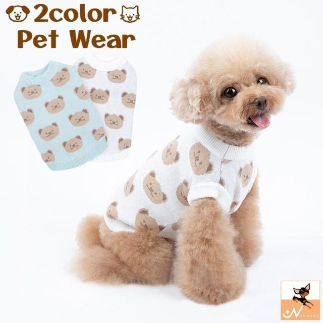 ペットウェア セーター ニット ベスト 犬服 猫服 ドッグ キャット ノースリーブ 刺繍 クマ くま あったか 暖かい 防寒 寒