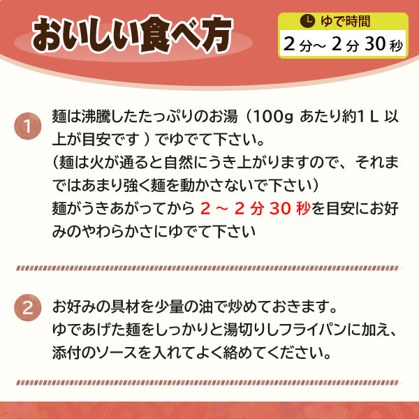 - 焼きそば麵の太さや柔らかさも丁度よく、とっても美味しく頂きました。