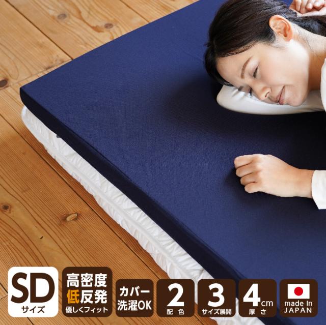 マットレス セミダブル 低反発 日本製 厚さ4センチ ネイビー ホワイト オーバーレイ お使いの敷き布団の上に ベッドの上に ウレタン 送料無料《MS低反発SD》