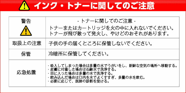 | ※リサイクル(互換性)インクの保存期間は開封後約6ヶ月が目安です。安定した印刷品質を得るためには、開封後6ヶ月以内に使い切ることをお勧めしております。 ※リサイクル(互換性)インクに使用されるインクは純正インクではありませんので、若干の色味の違いがあります。使用上問題はございませんが、他の種類のインクとの併用はあまりオススメしておりません。 ※リサイクル(互換性)インクの使用によってプリンタ本体に不具合が発生することは考えにくいことですが、万が一不具合が生じた場合にはまず上記、弊社サポートダイヤルまでご相談下さい。対処方法についてご案内させて頂きます。 |