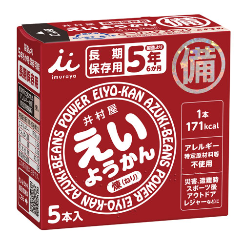 | 【検索用キーワード】 4901006111669 SH1387 井村屋 えいようかん 60g×5本入 いむらや イムラヤ エイヨウカン ようかん ヨウカン 羊かん 羊羹 食品 しょくひん お菓子 おかし オカシ 菓子 かし カシ デザート 甘い 簡単 手軽 栄養 カロリー 補給 長期保存 長期保管 防災用品 防災食品 災害時非常食 非常食 防災 災害 非常時 保存食 携帯食 緊急支援物資 ローリングストック |