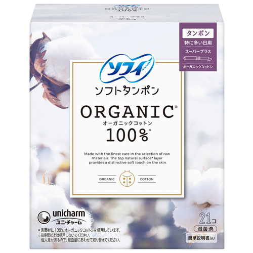 ユニ・チャーム ソフィ ソフトタンポン オーガニックコットン100% スーパープラス 特に量の多い日用 アプリケータータイプ 21本入り