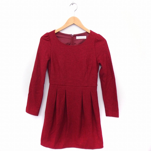 【中古】トランテアン ソン ドゥ モード 31 Sons de mode ワンピース 丸首 長袖 ひざ丈 ウール混 起毛 38 レッド /FT