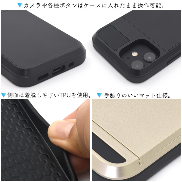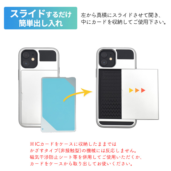 スマホケース iPhone12mini用 ICカード収納可能 携帯ケース スライド式 カードホルダー付き スマホカバー 装着簡単 背面保護 携帯カバー シンプル カジュアル メタリック風 お洒落 上品 バックカバー iPhoneケース SoftBank au docomoスマートフォンケース 定番 人気