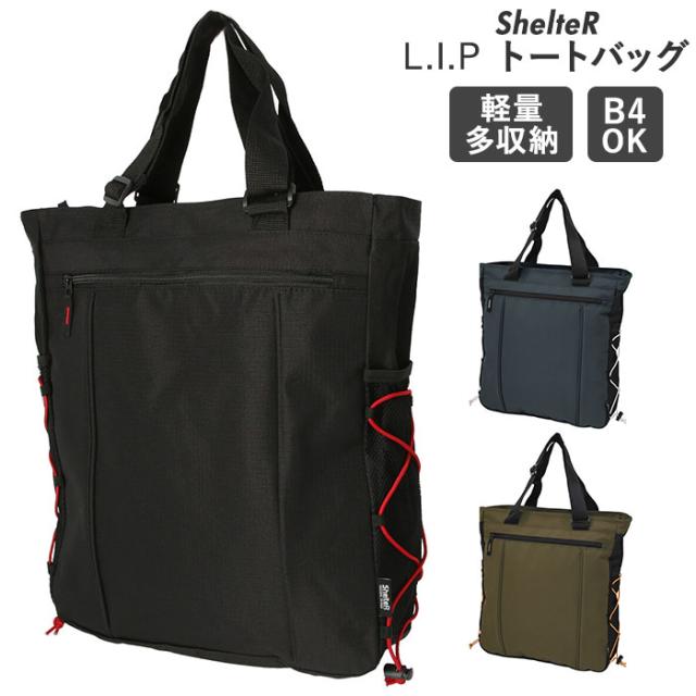 トートバッグ メンズ 大きめ 通販 レディース 縦型 A4 B4 A3 通学 通勤 軽量 軽い ファスナー付き 多収納 ポケット シンプル カジュアル 肩掛け ShelteR シェルター L.I.P LIP-05