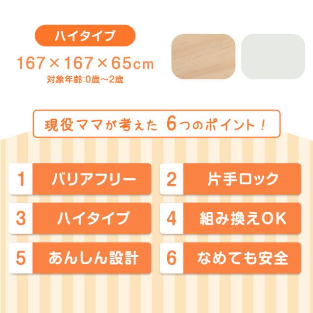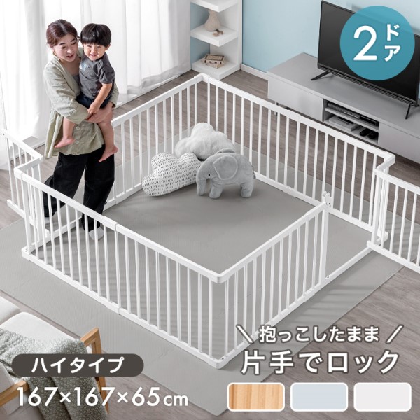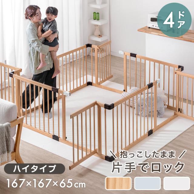 ベビーサークル 幅167cm ハイタイプ 8枚セット 扉付き 片手でロック ドア 扉 木 ベビー サークル 天然木 木製 8枚 セット 赤ちゃん プレイペン キッズサークル おすすめ おしゃれ