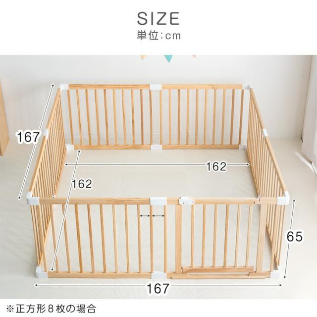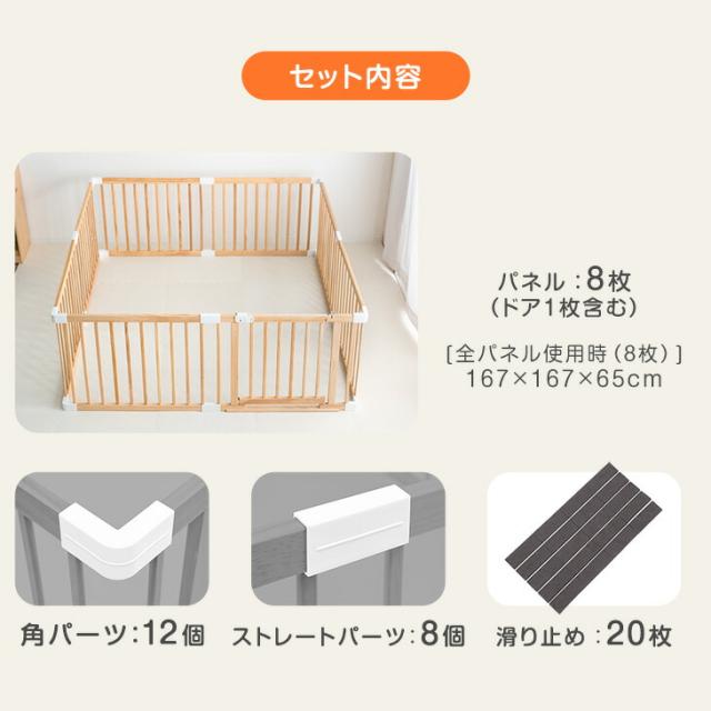 ベビーサークル 扉付き ドア 天然木 8枚 セット 赤ちゃん プレイペン 木製 おすすめ おしゃれ 大きい ベビー用品 おすすめ ジョイント フェンス【商品番号:65200003】