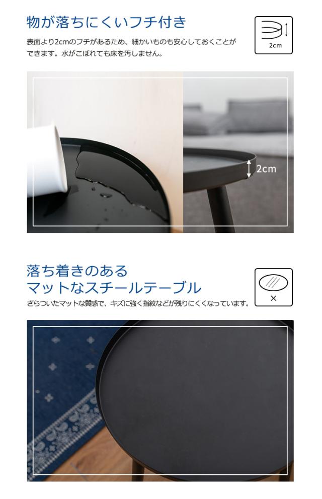 ・ものが落ちにくく、水がこぼれるのを防ぐフチのある天板