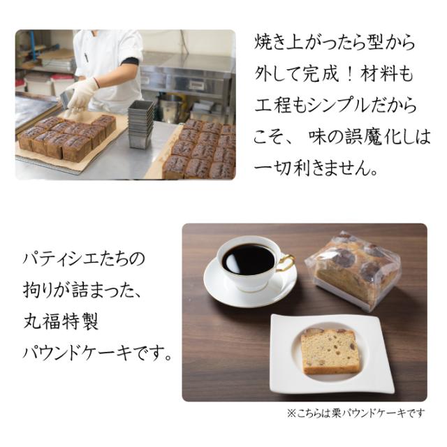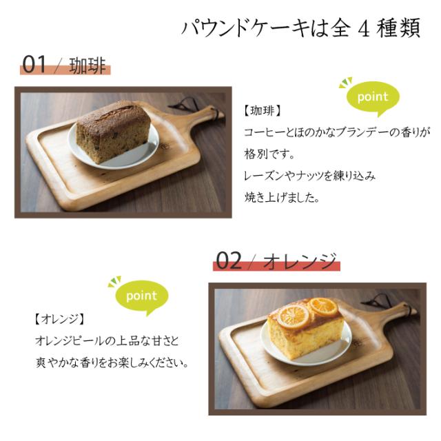 | 原材料 | 【ドリップコーヒー】コーヒー豆 【オレンジパウンド】オレンジ砂糖漬(国内製造)、卵、バター、小麦粉、砂糖、洋酒/膨張剤、酒精、酸味料、香料 【栗パウンド】栗甘露煮(栗,砂糖)(国内製造)、卵、バター、砂糖、小麦粉、マロンペースト、洋酒,マジパンローマッセ(アーモンド,砂糖,転化糖シロップ)/膨張剤,香料 【フルーツパウンド】卵(国産)、バター、砂糖、洋酒漬ミックスフルーツ(レーズン,砂糖,ドライクランベリー,洋酒,オレンジピール,リンゴ,ドライパインアップル,レモンピール,その他)、小麦粉、オレンジ砂糖漬、ドライフィグ、ドライアプリコット、洋酒、チェリー砂糖漬、アーモンドスライス、杏ジャム/膨張剤,酒精,酸味料,増粘剤(ペクチン)酸化防止剤(二酸化硫黄,ビタミンC)、香料、クエン酸K、着色料(カルミン酸)、乳酸Ca 【珈琲パウンド】卵(国産)、バター、砂糖、小麦粉、レーズン、ピーカンナッツ、コーヒー、洋酒/膨張剤 |