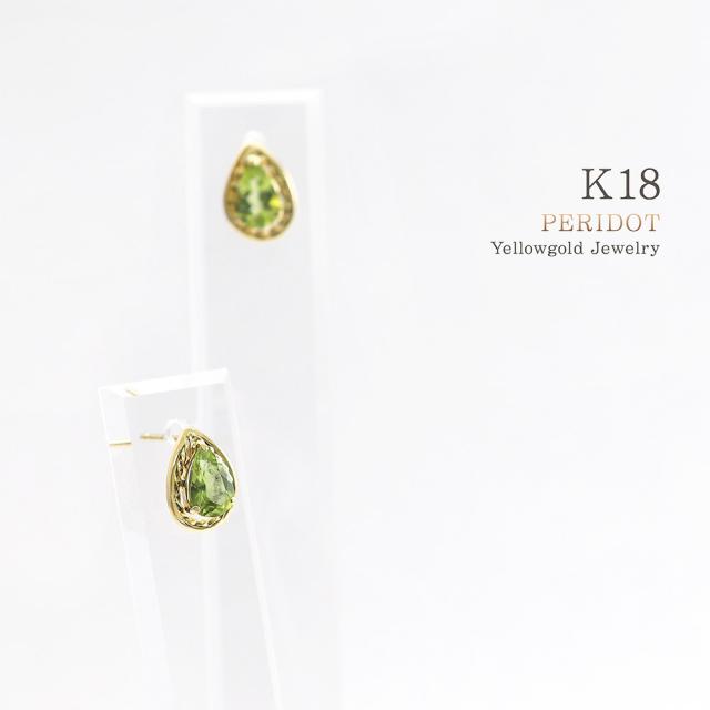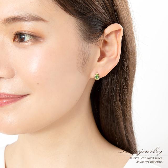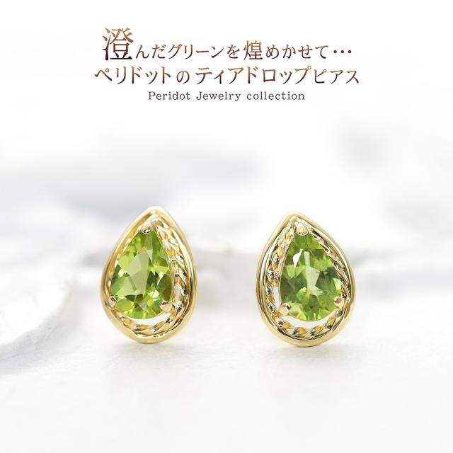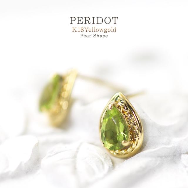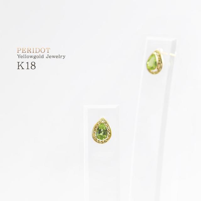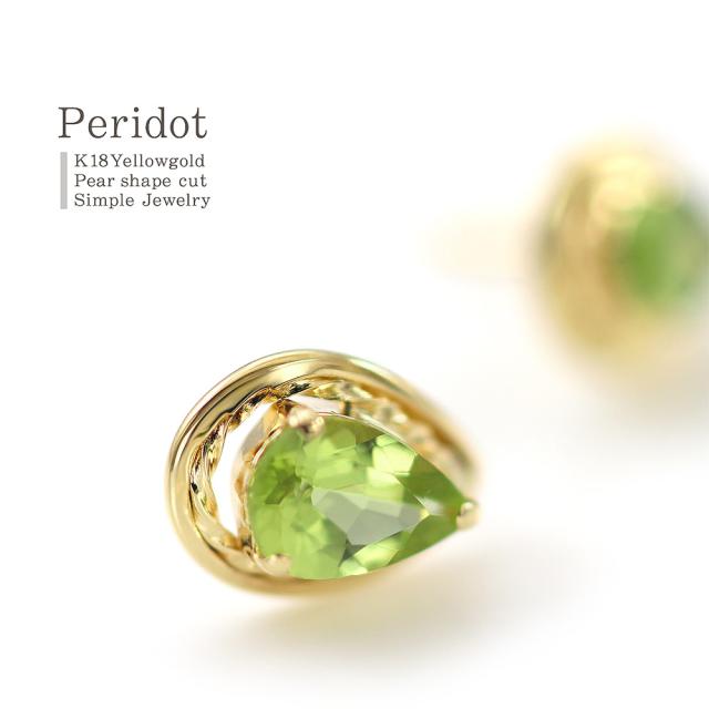 ピアス レディース 小さい 18金 ペリドット 8月 誕生石 しずく シンプル イエローゴールド K18 18K ティアドロップ 涙形 小ぶり プレゼント 誕生日 記念日 アクセサリー ジュエリー 黄緑 若草色 グリーン ホワイトデー お返し ギフト 女性 彼女 妻