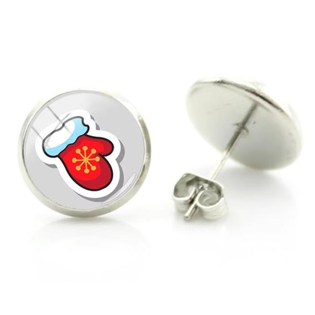 14mm カボションピアス (サンタの手袋) 1ペア クリスマス 冬 てぶくろ 12月 サンタクロース イベント 丸型 丸い カボーション 20G 20ゲージ 20g ファッションピアス シルバー 銀色