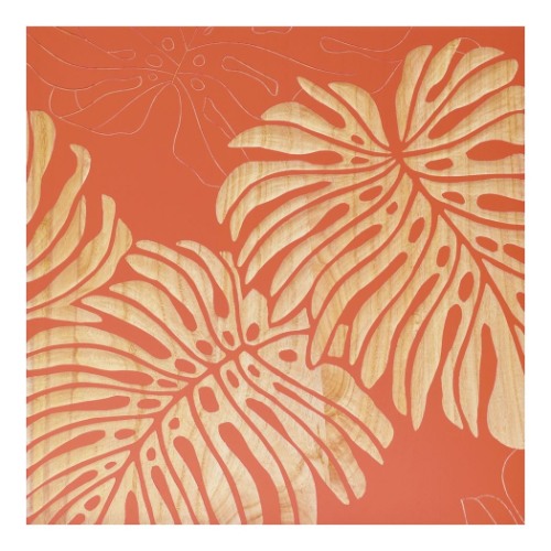 「インテリアパネル ウッドスカルプチャーアート ワイルド モンステラS ロハスオレンジ 木製 インテリア 取寄品」