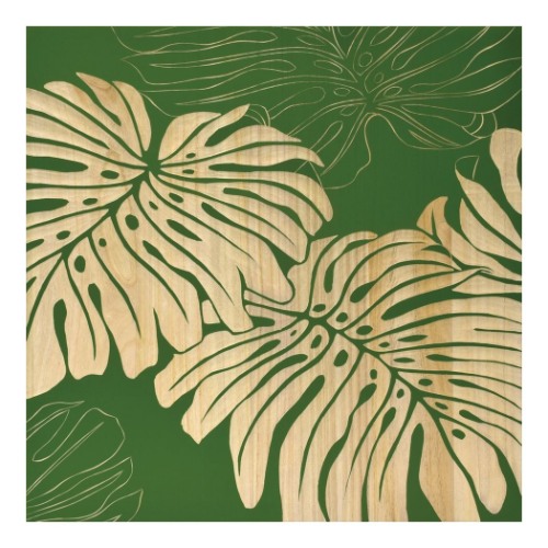 インテリアパネル ウッドスカルプチャーアート ワイルド モンステラ ロハスグリーン 木製 インテリア 取寄品