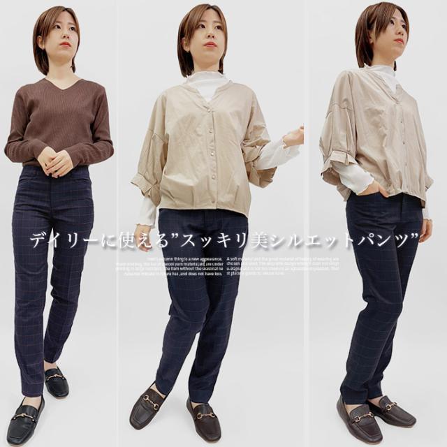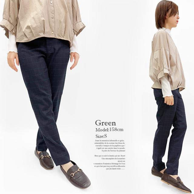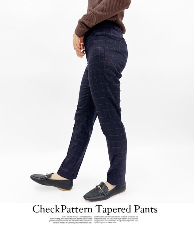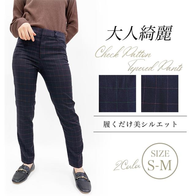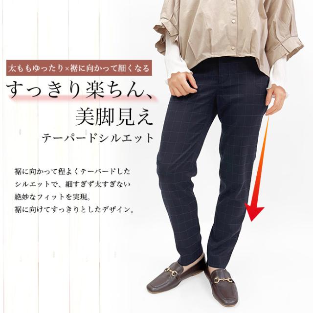 テーパードパンツ スラックスパンツ チェックパンツ ウエスト フック アジャスター ボタン フック ストレッチ 伸縮性 ウインドーペーン オフィス カジュアル キレイめ 値下げ セール 送料無料