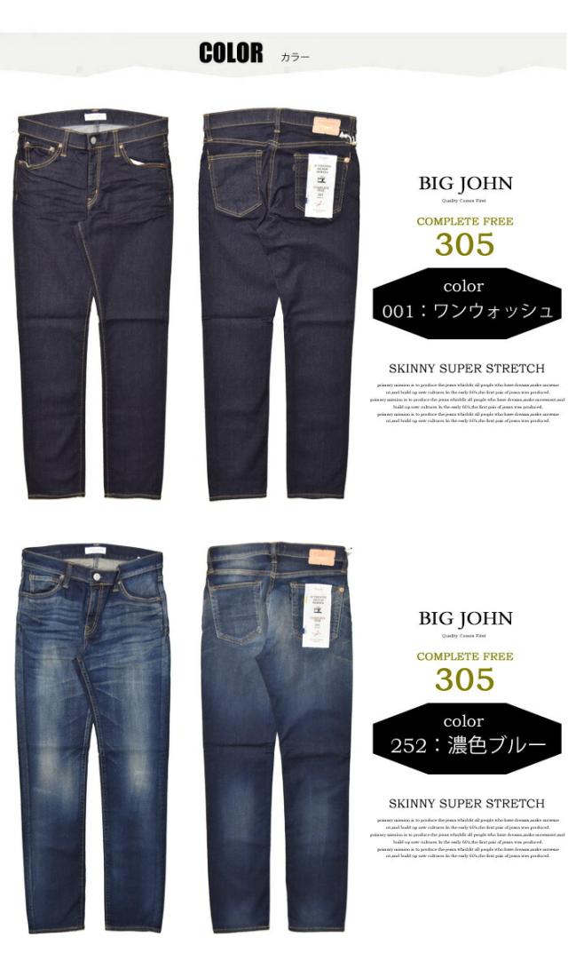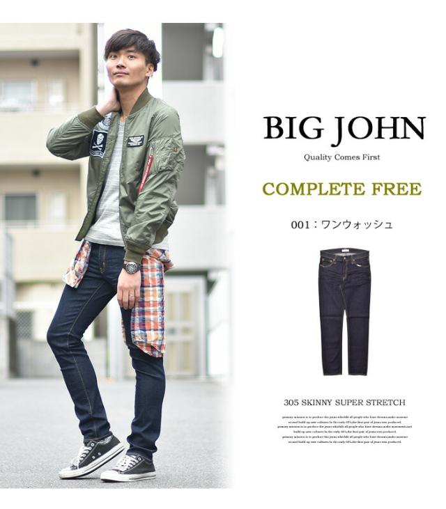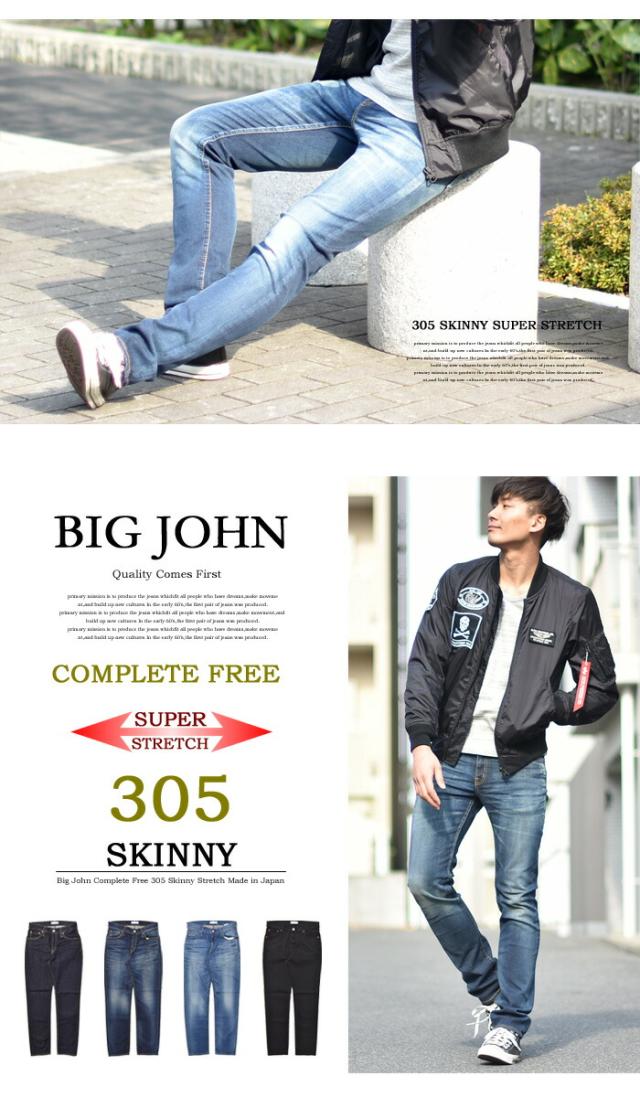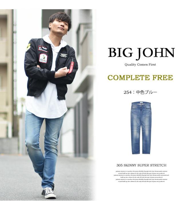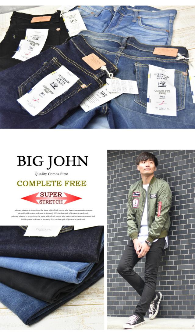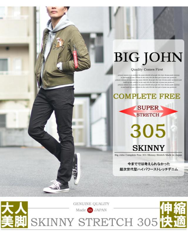 BIG JOHN ビッグジョン COMPLETE FREE 305 スキニー ストレッチデニム ジーンズ ジーパン タイトストレート メンズ ビックジョン BJM305F