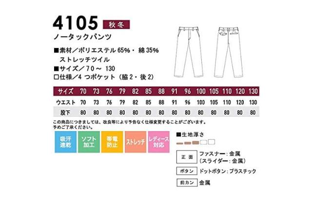 作業服 三愛 SAN-AI ノータックパンツ 秋冬 4105