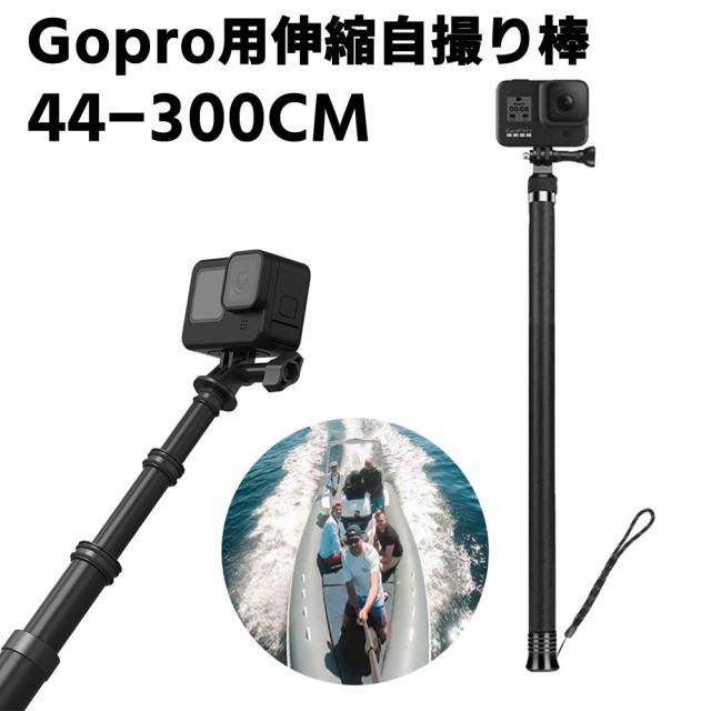 自撮り棒 セルカ棒 Gopro用 延長ポール3M 炭素繊維カーボン製 自撮り棒 高所撮影 軽量 伸縮 180°回転 折りたたみ式 Gopro Hero/xiaomi Yi/SJCAMなどのアクションカメラ対応 9段階利用