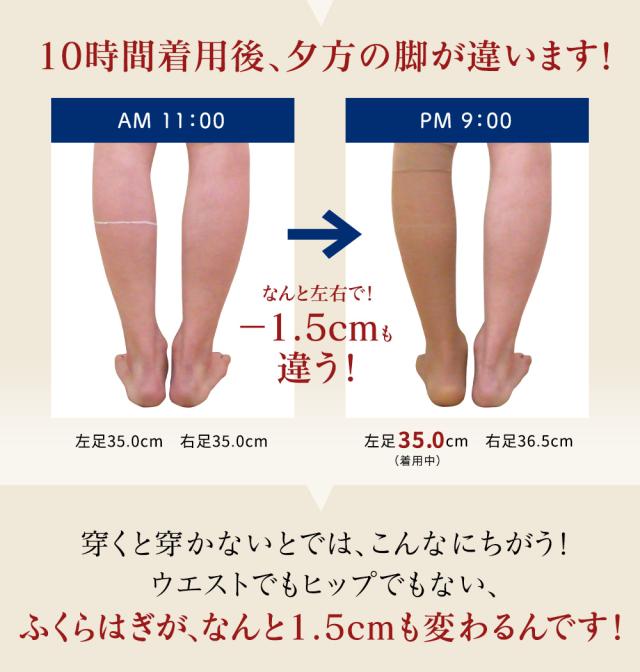- 本当かな?と片方履いて試しましたら本当に1.5センチ細くなっていました 美脚のためでなく むくみがあるので内科医に勧められ たのですが これよりきついと履きにくいしつま先とかかとはゆるくなっているので...