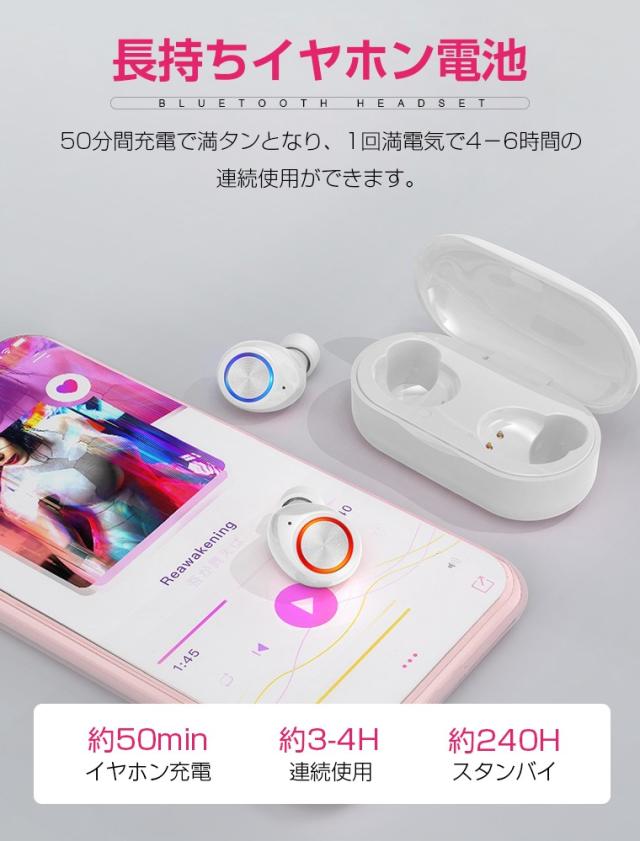 ワイヤレスイヤホン イヤホン bluetooth iPhone android Siri対応 高音質 ブルートゥース カナル型 AAC対応 両耳 左右分離 防水 スポーツ マイク