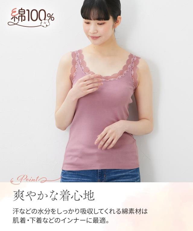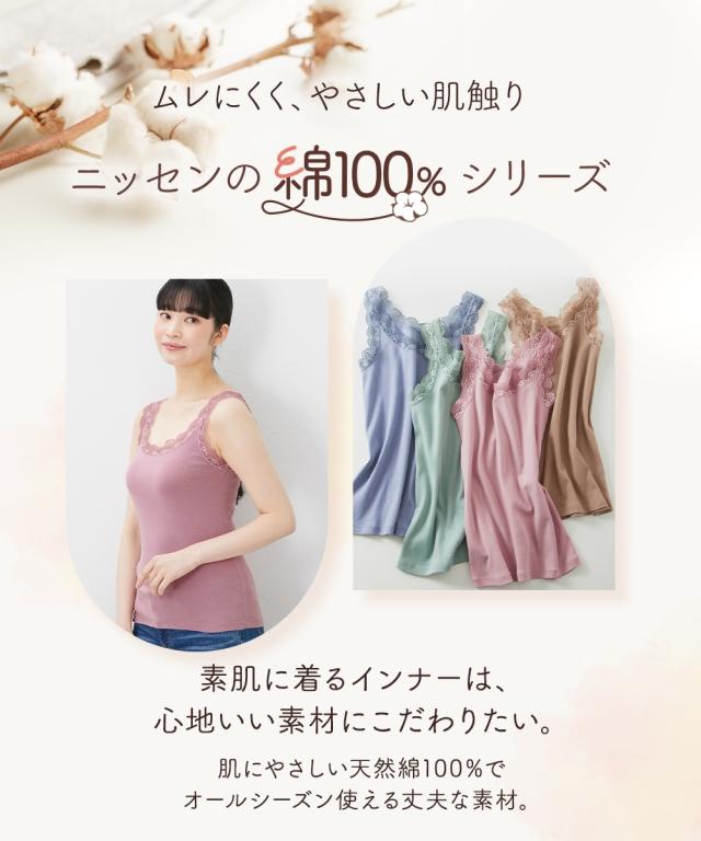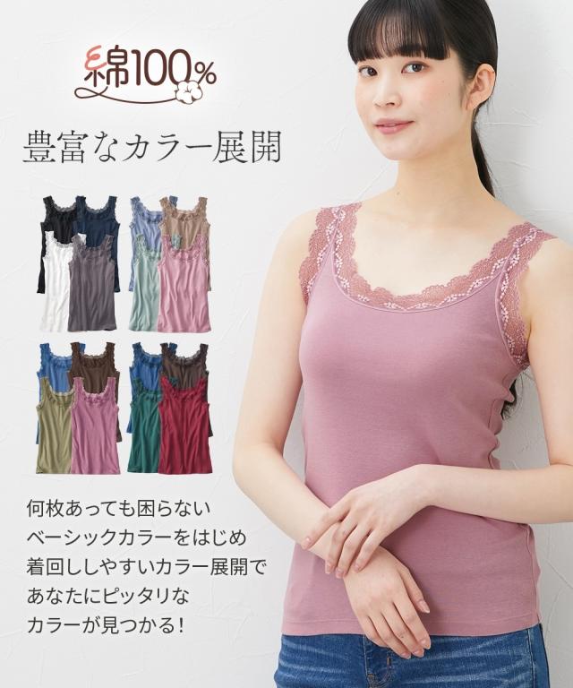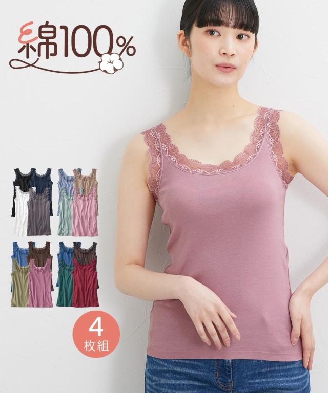 タンクトップ 4枚組 綿100% レース ディープカラー/スモーキーカラー/ベーシックカラー S/M/L/LL/3L 肌着 インナー レディース ニッセン nissen
