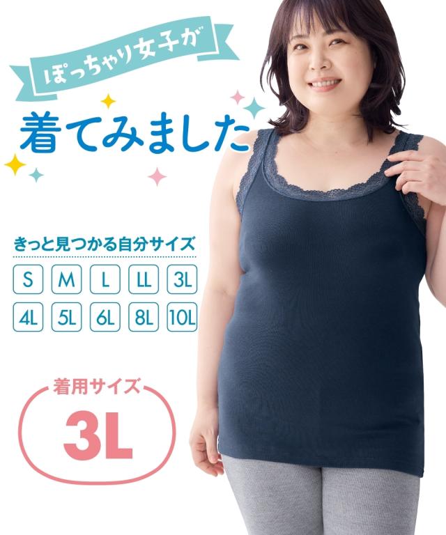 - 日頃3Lを着用でゆとりあり。今回3Lを購入。着用感はLL超えてLくらいに感じます。レビューで覚悟はしていたので完全にインナーにするつもりで購入しましたが、インナーにしても肩ひもはレースしかないのでビロビロ伸びてくるし、胸もお腹もパツパツです。良かった点は4枚でこのお値段だという点だけかな…とりあえず無理してでも着てます。