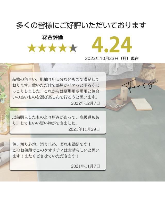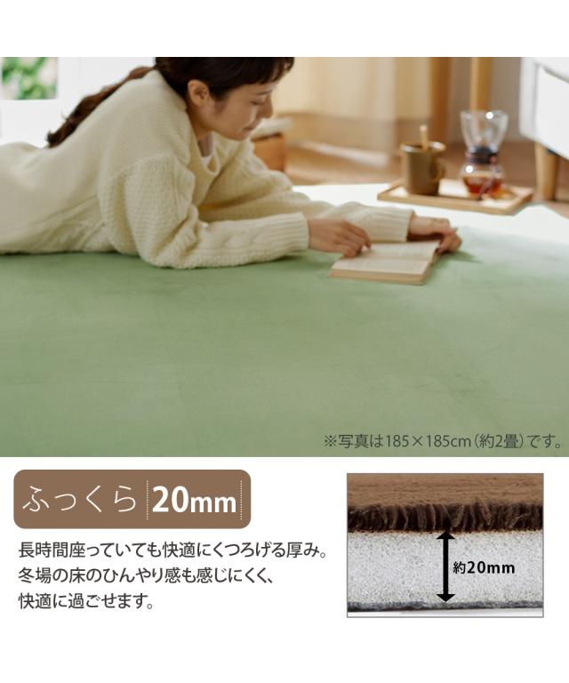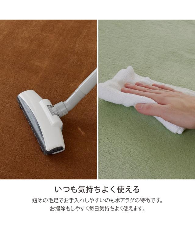 ロングセラーのボアラグに、トレンドのインテリアにもマッチするスモーキーな新色が登場!四隅の角の丸みを抑え、よりスタイリッシュにインテリアにマッチするデザインへの改良も行いました!はっ水加工を施しているので、水をこぼしてもサッと拭き取れてお手入れ簡単!クッション性のよいウレタンフォームを、ふわふわ柔らかなボア素材でサンド。踏み心地はふっくら気持ちよく、直接座っても寝ころんでも快適に過ごせます。夏はサラリとした肌触りで快適に、冬はホットカーペットカバーとしてオールシーズンお使いいただけます。