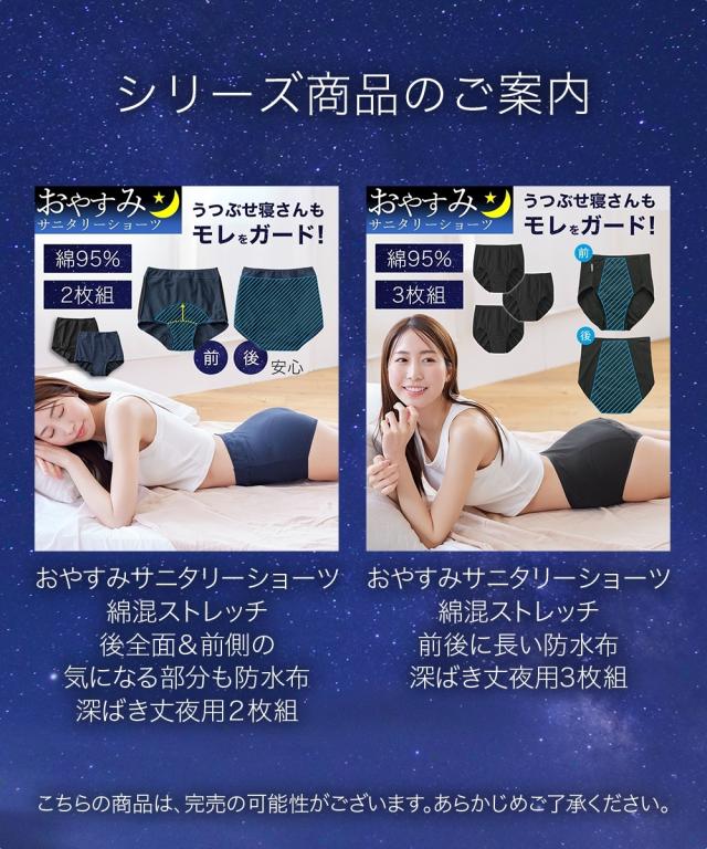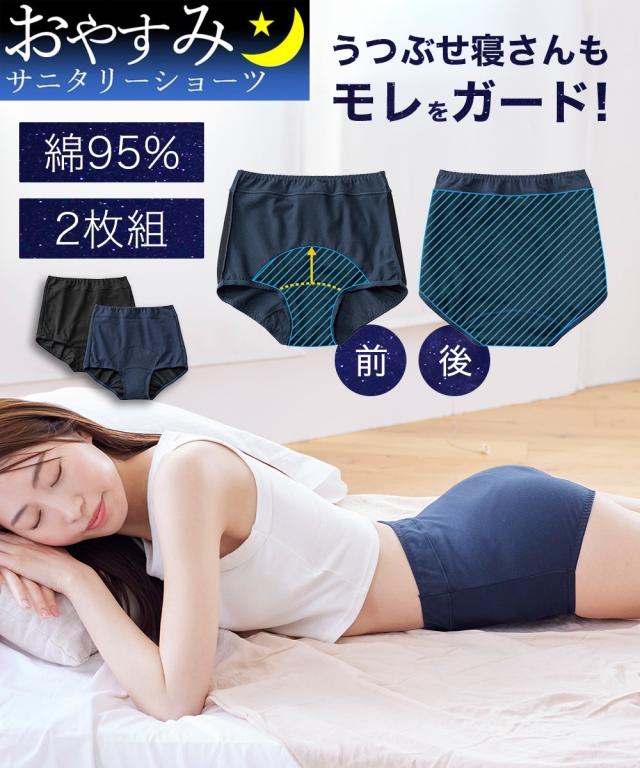 ショーツ サニタリー レディース 気になる部分も防水布 多い日の夜も安心 抗菌防臭加工 むれにくい おやすみ 深ばき 2枚組 羽付ナプキン対応