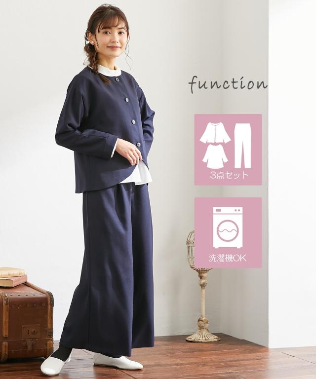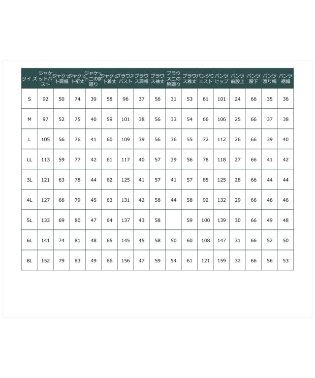 品質=<ジャケット>[表地]ポリエステル100%[裏地]ポリエステル100% <ブラウス>ポリエステル100%<パンツ>[表地]ポリエステル100%[裏地]ポリエステル100% 【裏地】ジャケット:有(総裏) ジャケット:肩パッド無・前ボタン開・ポケット両脇 ブラウス:後涙ボタン開ボトム:前ファスナー開・ウエスト後ゴム入・ポケット両脇・後飾り この商品は3点同サイズのみでの販売です。※注意コメントデザインによりサイズ感が異なりますので、詳しい仕立てサイズ表をご確認ください。お客様のパソコン・スマホのモニタ