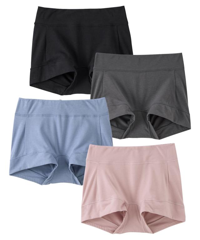 テンセルTM繊維・綿混ストレッチお腹脚口らくちん深ばきボックスショーツ4枚組