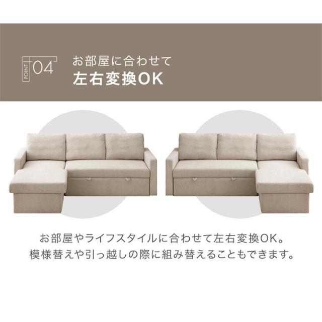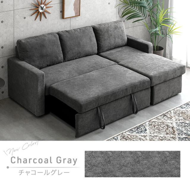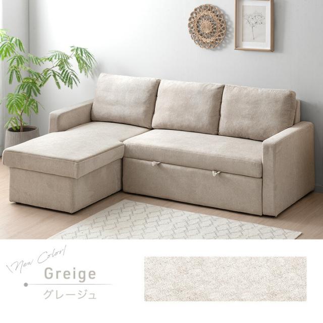 ソファー 3人掛け 収納付き ソファベッド カウチソファ 跳ね上げ式 ファブリック カウチソファ ソファ [超大型商品]
