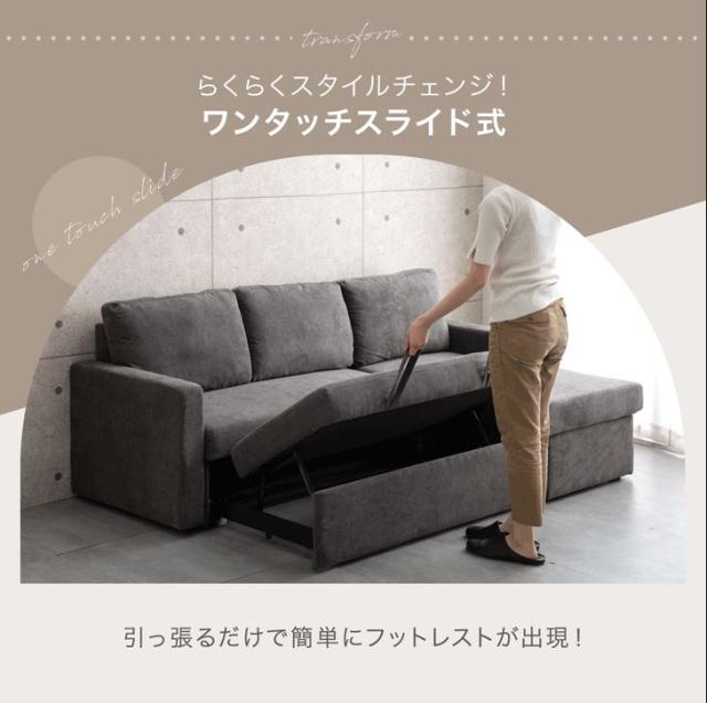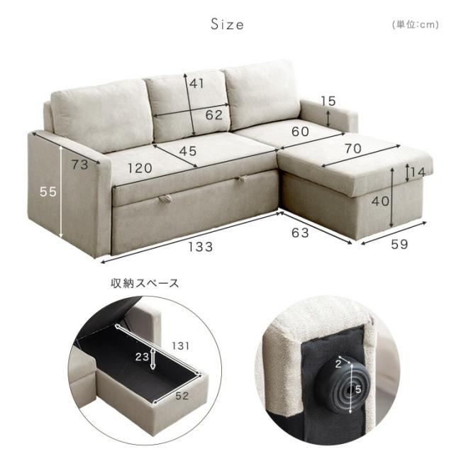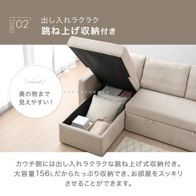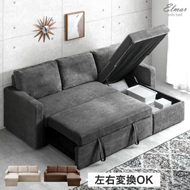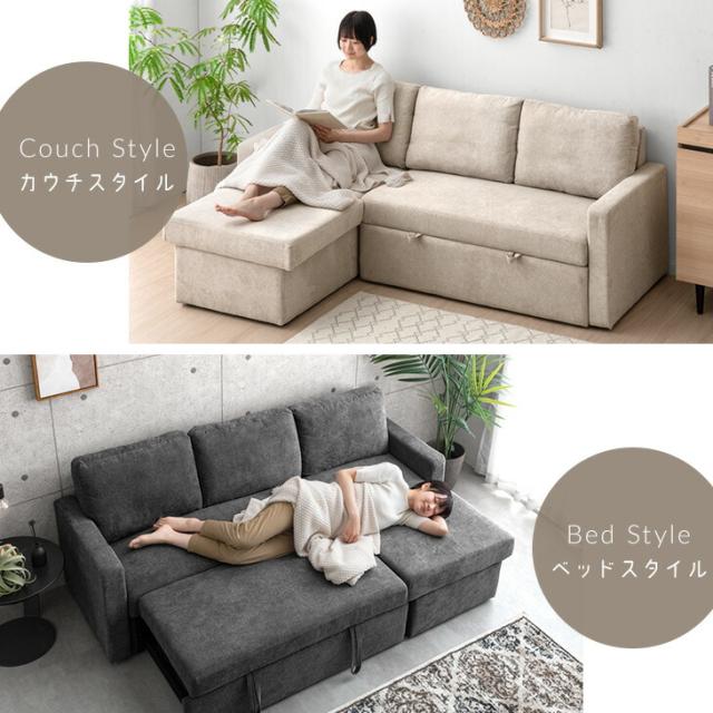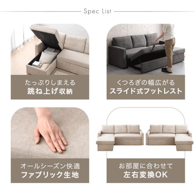 収納付き ソファベッド 三人掛け カウチソファ 跳ね上げ式 ファブリック L字 3人掛けソファー 収納ソファ ソファーベット ソファベット カウチ おしゃれ sofa bed